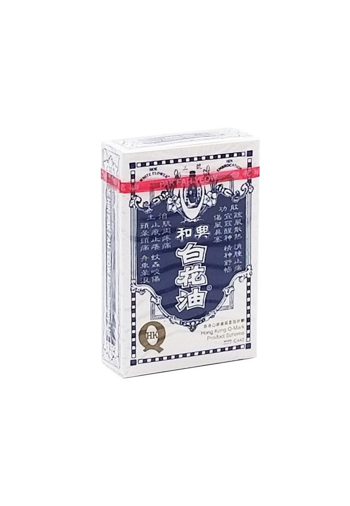 和興白花油主要成份包括桉葉油、薰衣草油,及薄荷腦,含天然成份,分別採購自法國、中國及澳洲,質量標準符合英國藥典或中國藥典所列之要求 解除因傷風或感冒引起之鼻塞、減輕頭暈頭痛、暫時舒緩肌肉疼痛、舟車暈浪、具有消炎殺菌作用、對蚊蟲咬傷具止癢作用及令精神舒暢