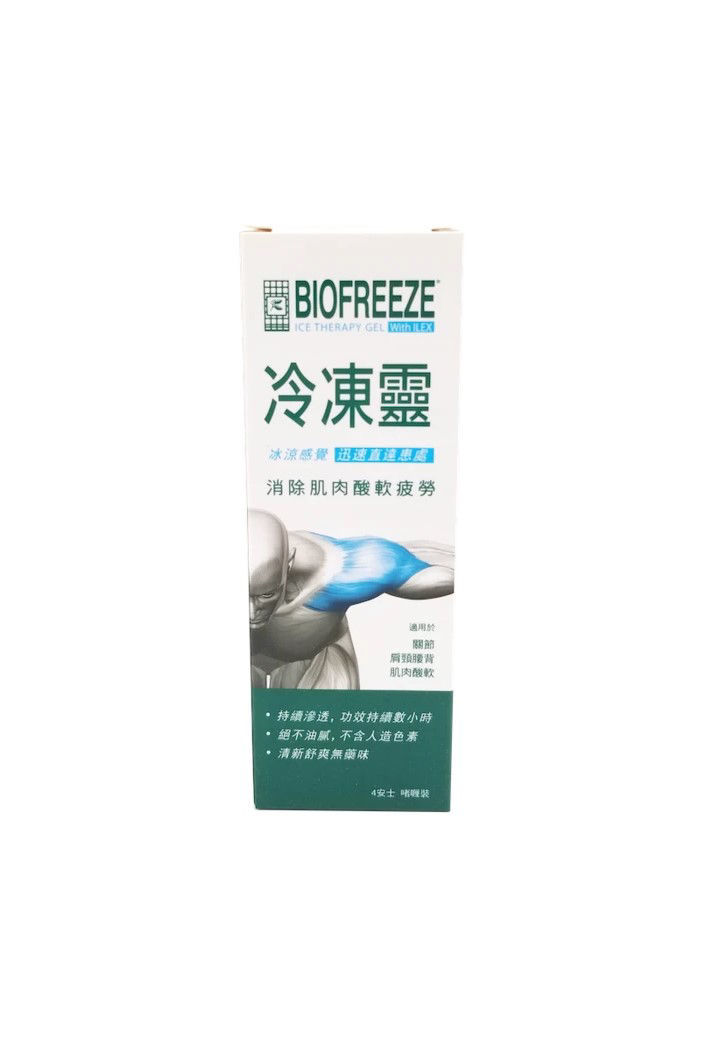 消除工作及運動後肌肉酸軟疲累 4 oz Biofreeze 是一種冷凍啫喱膏,廣泛被醫生,物理治療師,脊醫,按摩治療師及運動員使用。Biofreeze 含有一種在南美廣被當地居民使用的草藥 ILEX 。加入薄菏及樟腦,Biofreeze 能快速舒緩因工作或運動引起的肌肉疲勞及酸軟,其獨特冷凍效果及香味,每為初用者所接納。 Biofreeze 更可跟超聲波機一起使用以增強物理治療效果